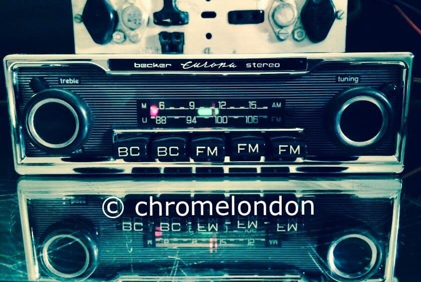 BECKER EUROPA STEREO NAME BAR EMBLEM WHICH FITS INTO THE UPPER CENTRE APERTURE OF THE CHROME SURROUND.