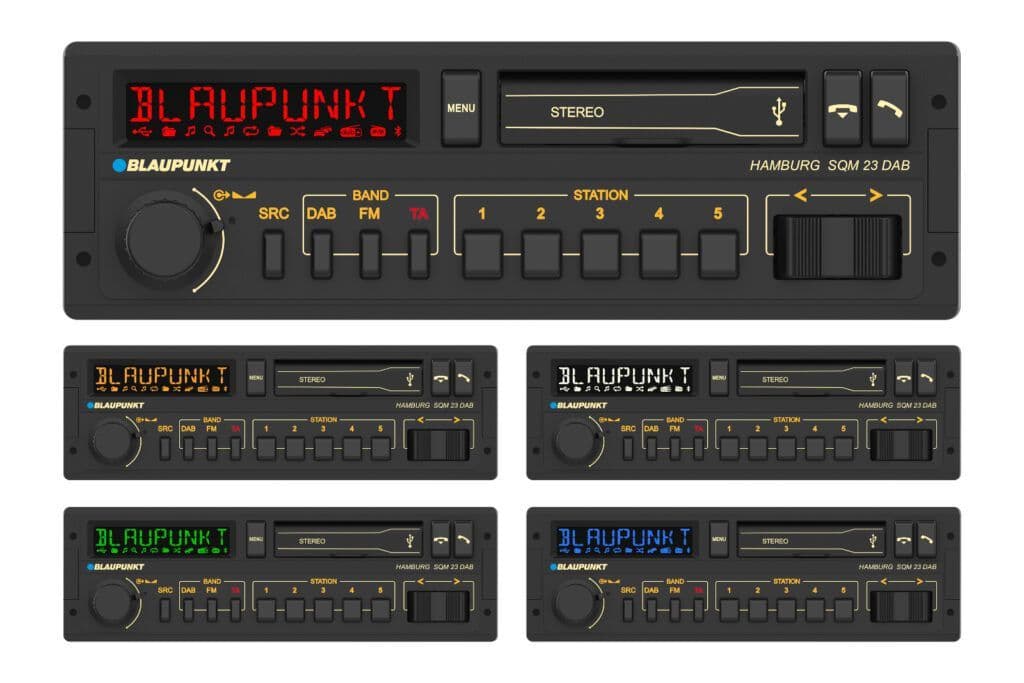 Over the years, some models have developed into true cult objects. This also applies to the legendary Blaupunkt “Hamburg SQM 23” from 1983. Now we present the new interpretation of the popular 1-DIN car radio and combine the design of the 80s model with new technologies and functions. The result is the Blaupunkt “Hamburg SQM 23 DAB”.