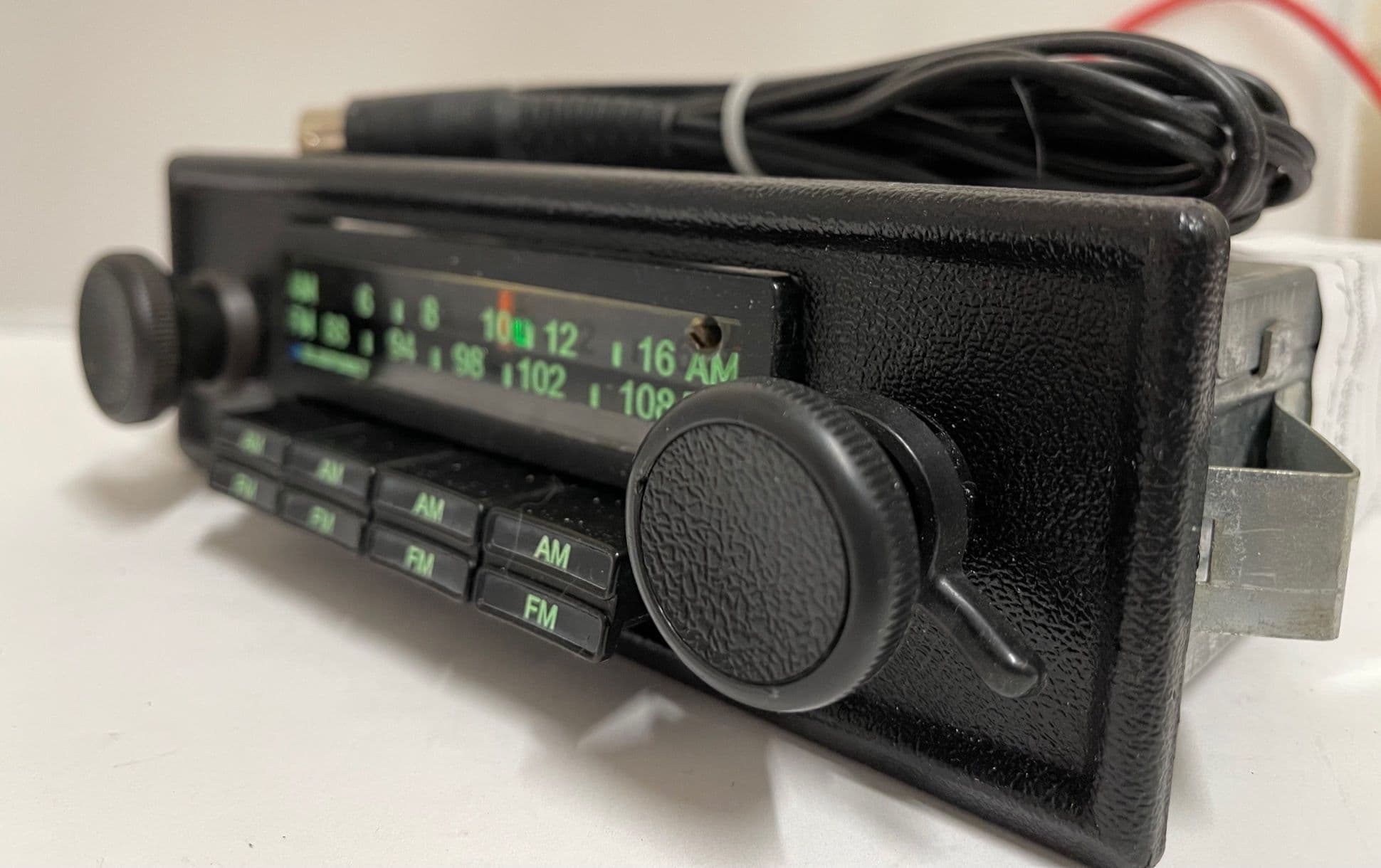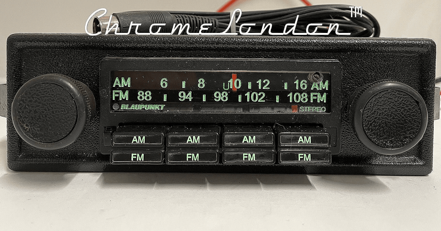 100% OPERATIONAL IN MINT CONDITION - FEATURING A DESIRABLE PORSCHE APPROPRIATE GREEN SCRIPT DIAL, ICONIC DOUBLE DECKER BANDS, FLAT KNOBS AND NOS BEVELLED 930 FASCIA. EVEN COMES WITH SIDE HOLDING BRACKETS FOR A SIMPLE A SLOT IN- REALLY WILL SET OFF YOUR DASH BEAUTIFULLY. SUPPLIED WITH IPOD/MP3 LEAD OR FULL BLUETOOTH INC HANDSFREE AS OPTIONS. RADIO PLAYS WITH POWER AND CLARITYBLAUPUNKT FRANKFURT US KIT STEREO 108 MHZ 12V NEG- ON CHASSIS. MADE IN GERMANY