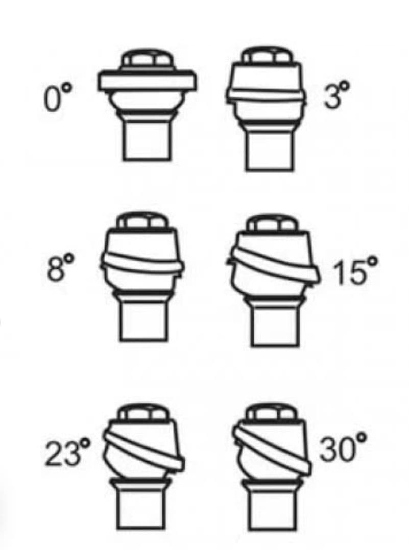 Six custom mounting heads for a variety of installation applications (0, 3, 8, 15, 23, 30 degrees)